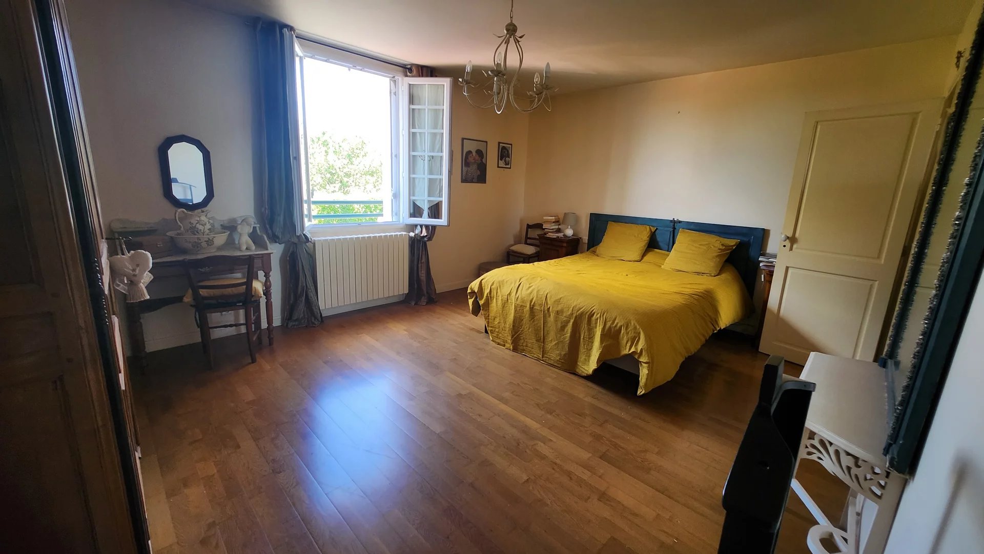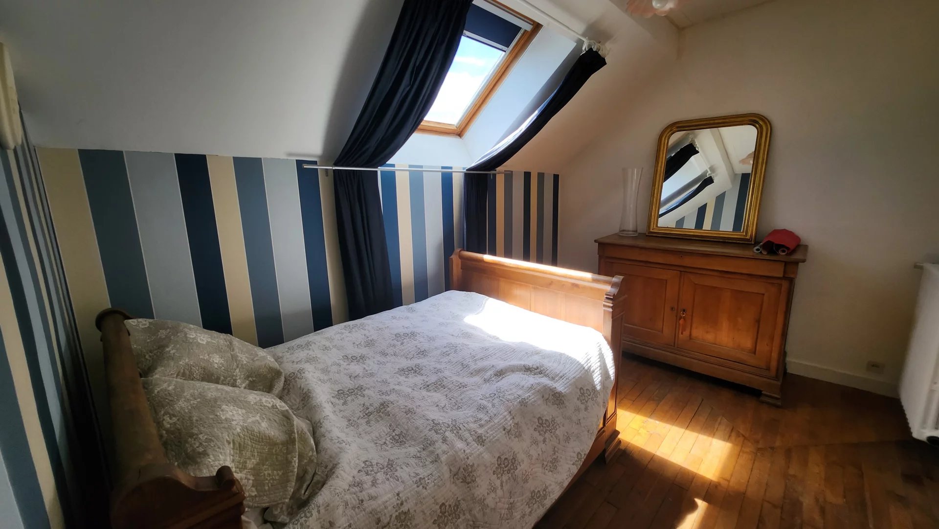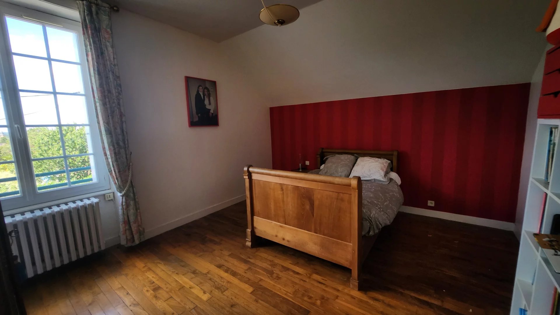 À l’étage, les chambres sont bien agencées. Le joli jardin arboré et les deux garages complètent le bien.
